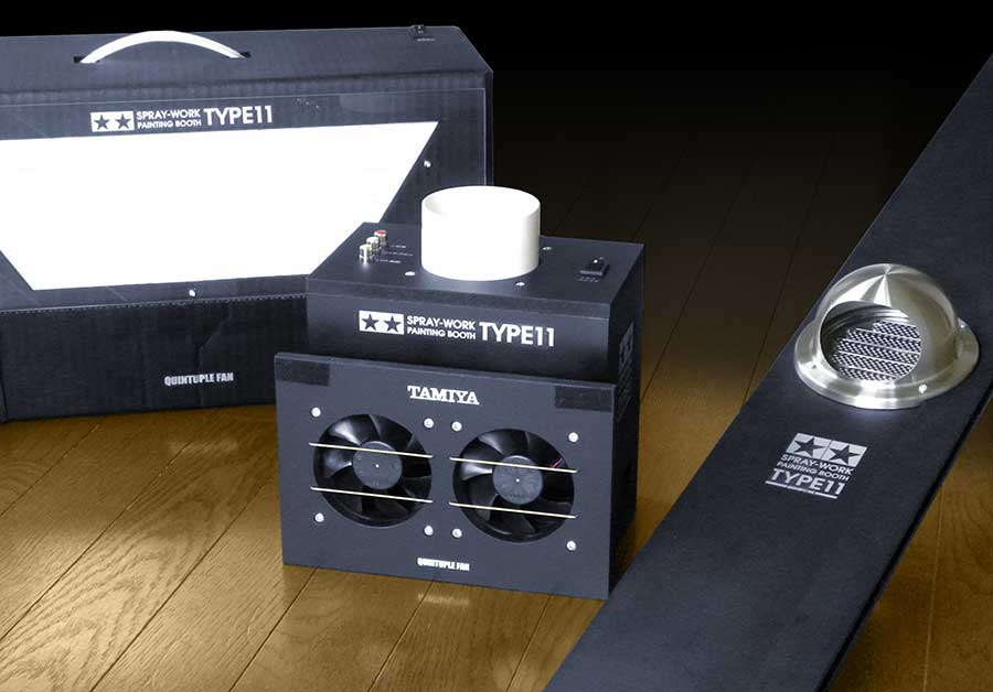絶対条件はちゃんと塗装ミストを排気すること! 吸気力がなければ塗装ブースの意味がありません。確実に吸気・排気を実行できるよう数々のアイディアを組み込みました。ホビー用塗装ブースとしては世界最多と思われる5つのファンを組み込んだ、クインティプルファン仕様!