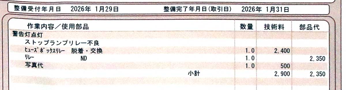 ディーラーの人にリレーの故障はよくあるのかと聞いた所、極めて稀ということだった。まぁ、リレー回路が簡単に壊れたらたまったもんじゃない。